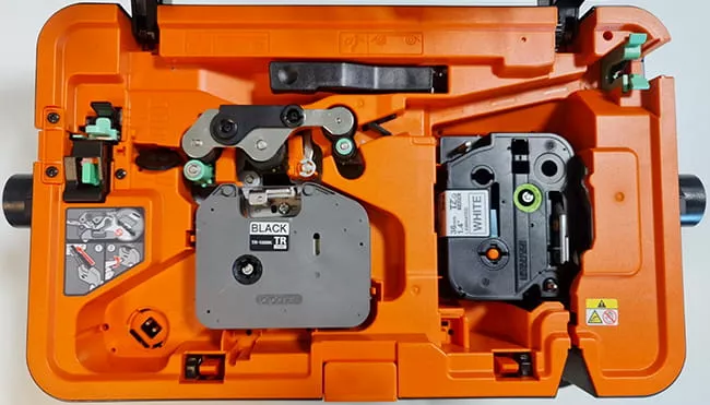 | نوع الشريط/الشريط اللاصق | TZe, HSe (أنبوب الانكماش الحراري)، FLe (شريط العلم بقطع القالب) |