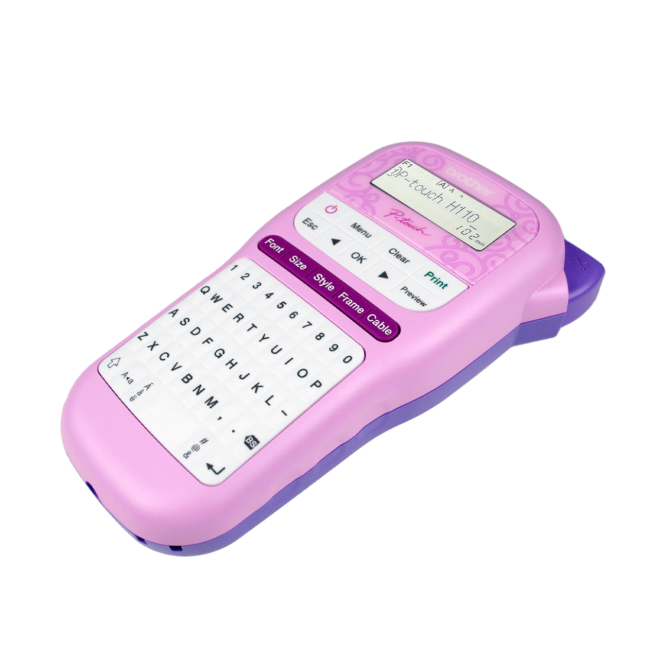طابعة ملصقات PT-H110، ودليل المستخدم، وشريط TZe الأولي 12 ملم (أسود على أبيض، 4 متر)