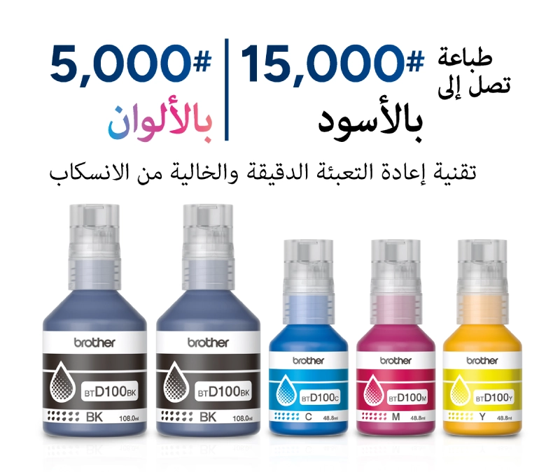 #تأتي الطرازات المختلفة بكميات مختلفة من زجاجات الحبر. تم احتساب معدلات الإنتاجية التقريبية بناءً على منهجية Brother الأصلية باستخدام نمط الاختبار ISO/IEC 24712.