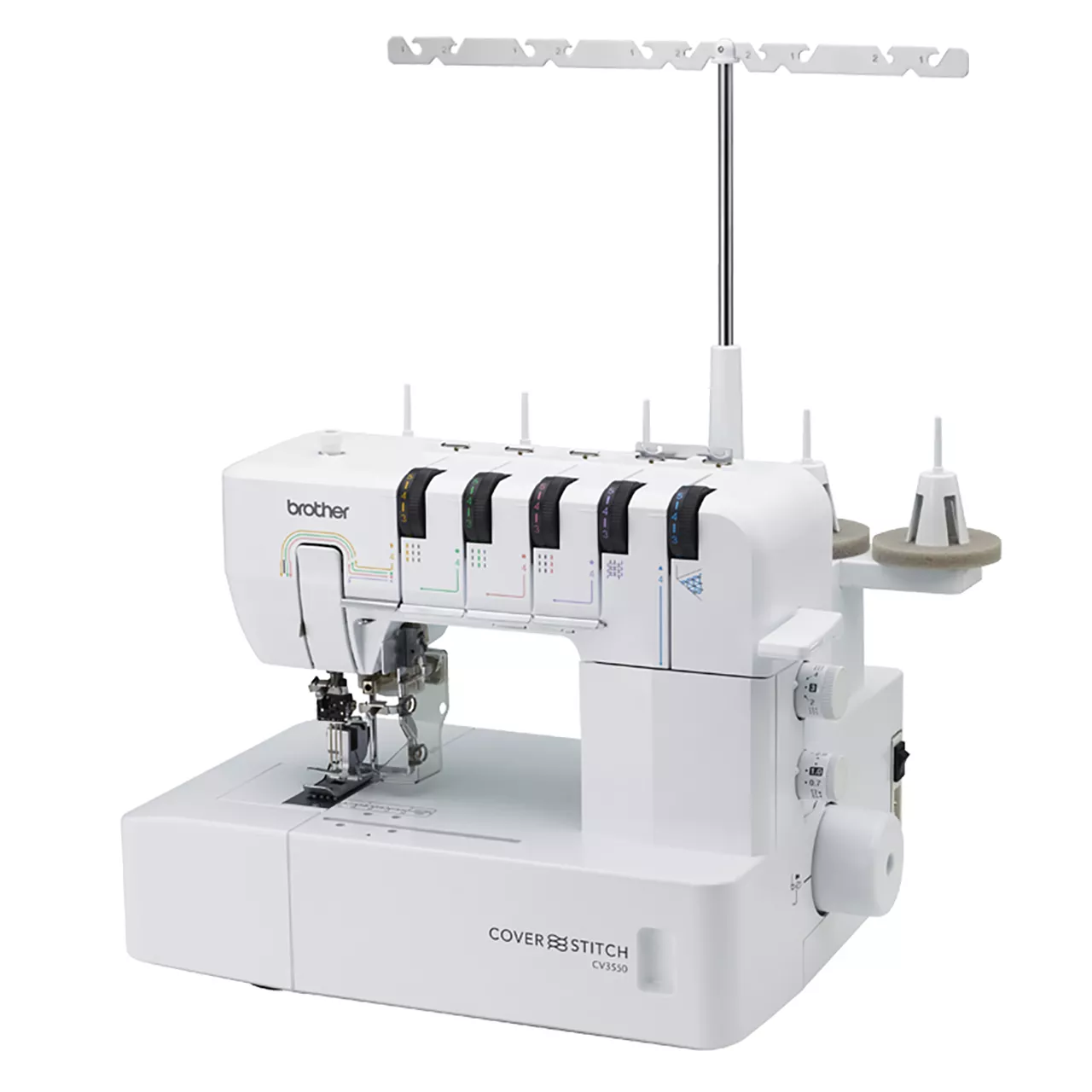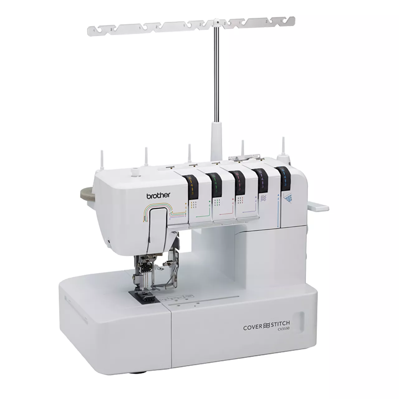 The Brother CV3550 double-sided coverstitch machine offers coverhem functionality for a high-quality, finish for your garments and homewares. Easy handling and user-friendly threading systems make professional-looking hemming and topstitching a breeze. View the included DVD to learn more about the CV3550’s 5, 4, 3 and 2 thread stitches including double-sided stitches then move your fabric easily with a roomy 155mm workspace and enjoy trouble-free stitching with the automatic release of thread tension and adjustable presser foot pressure. The free arm enables stitching on cuffs and smaller areas. The CV3550 is ideal for professional stitching for your garments and at leisure wear.