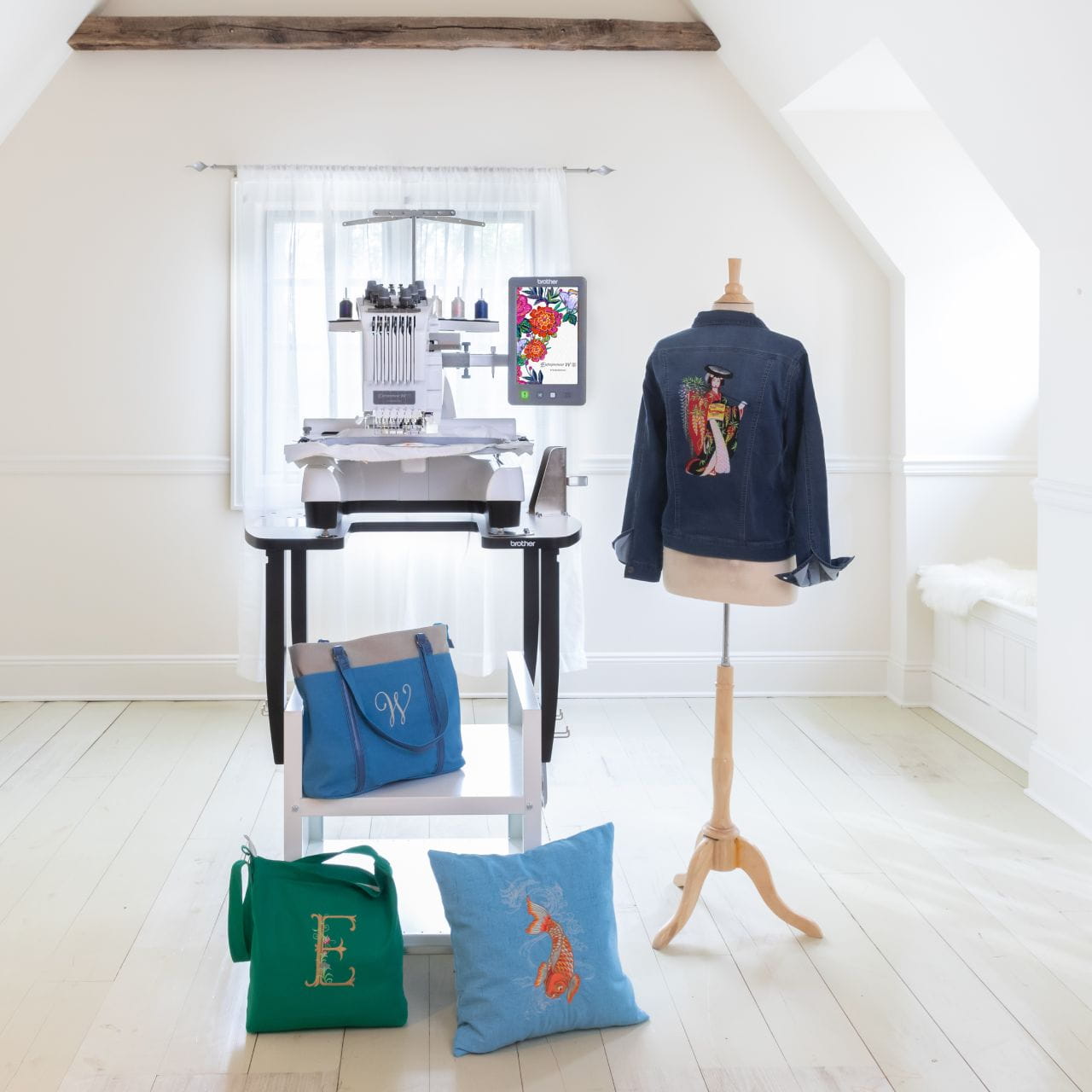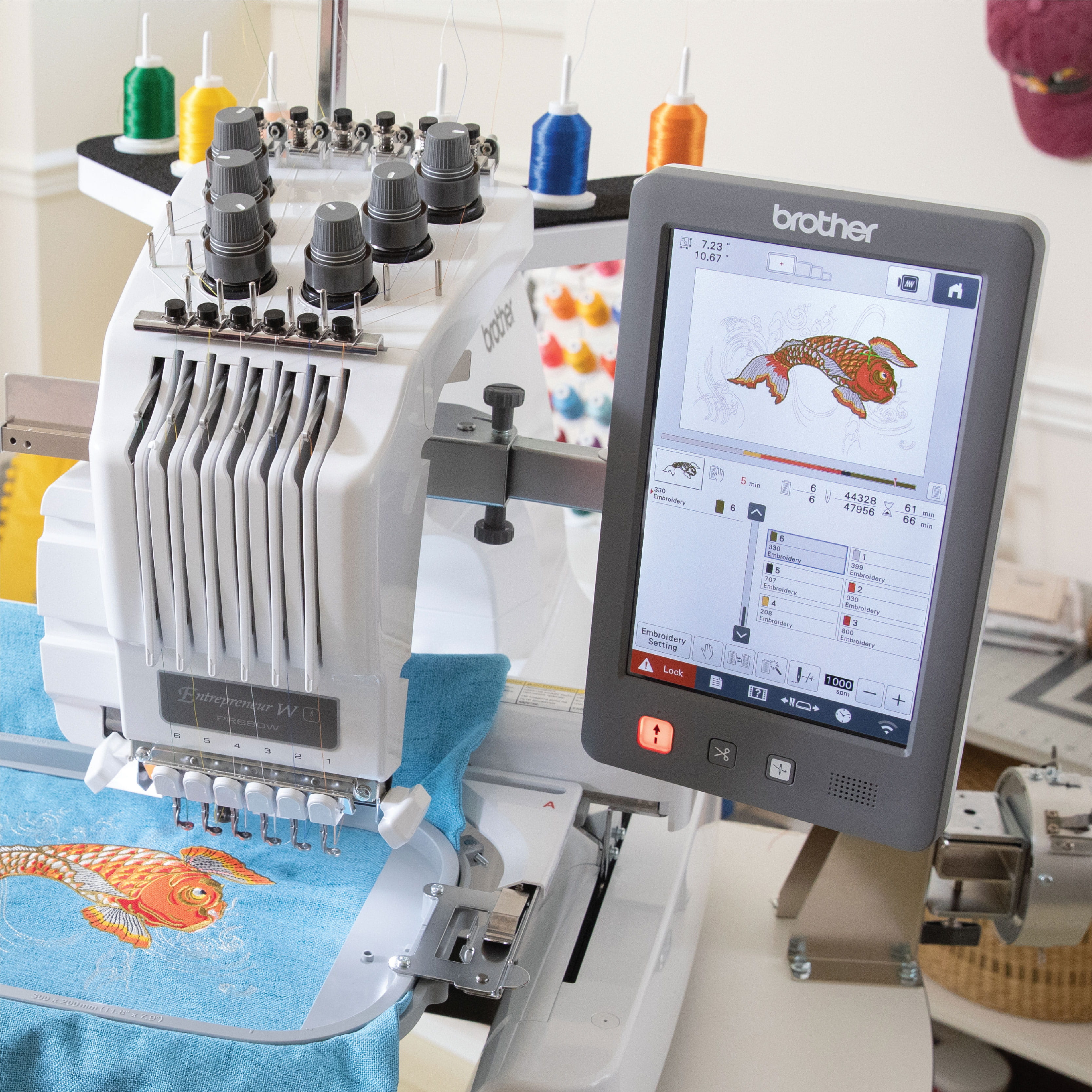 تحتوي على منطقة تطريز واسعة تتسع لكافة المشاربع تقريباً. وتتضمن أربعة إطارات تطريز: 300 مم × 200 مم، 180 مم × 130 مم، 100 مم × 100 مم و60 مم × 40 مم.