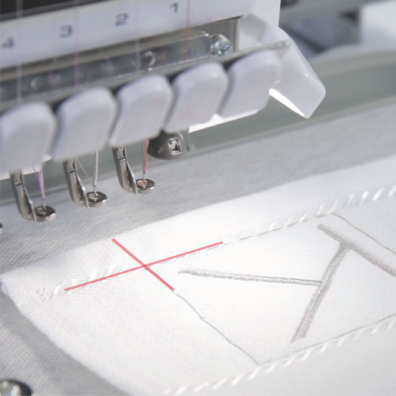 احصل على تموضع دقيق وإضاءة للنسيج بحيث تستطيع معرفة أين ستسقط الإبرة لجميع مشاريعك باستخدام ضوء الإسقاط الليزري لماكينة التطريز PR680W.