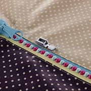 قم حياكة السحاب الضيقة تفيد هذه القدم الضاغطة في إرفاق العديد من أنواع السحابات.