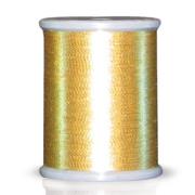Rich Gold metallic colour, 100% polyester specialty thread, high quality, durable, shiny texture.